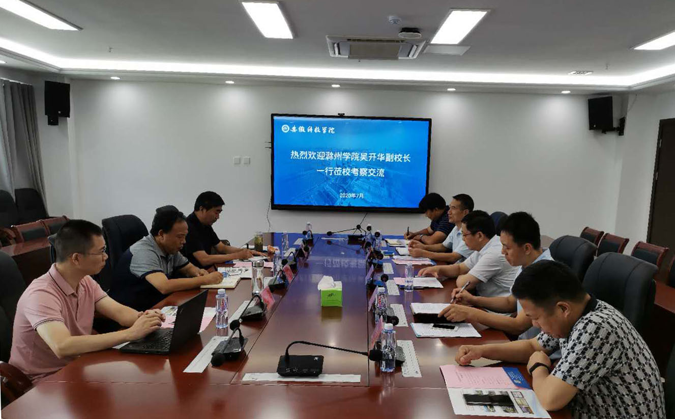 7月28日上午,滁州学院党委常委、副校长吴开华一行来我校考察交流消防可视化和门禁收费系统建设工作。校党委委员、副校长黄远友和龙湖校区综合管理办公室、网络与信息技术中心、保卫处、后勤保障等部门同志在龙湖校区综合信息楼会议室与考察组进行了亲切会谈交流。