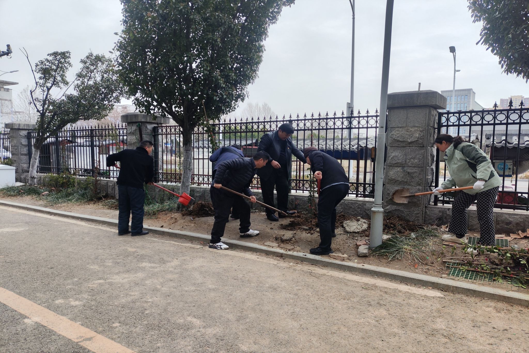 活动现场,有人铲土刨坑,有人扶苗培土,有人浇水灌溉,大家分工协作、默契配合,劳动场面繁忙有序。经过辛勤劳动,一棵棵蔷薇在校园“安家落户”。新栽的树苗迎风挺立,展现蓬勃生机,此刻“党建红”和“生态绿”交相辉映,为校园增添新的活力。