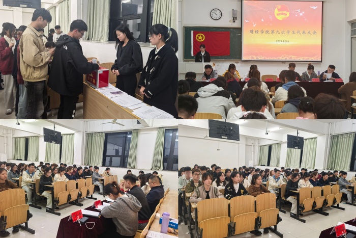 11月11日下午,财经学院第九次学生代表大会在龙湖校区致知楼A108教室顺利召开。财经学院党政领导和有关教师出席会议。来自学院各学生组织和班级的学生代表共64人参加会议。会议由财经学院学生会秘书长尹成超主持。