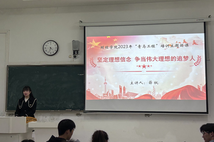 为深入学习贯彻党的二十大精神,落实好习近平总书记关于青年工作的重要思想,11月15日下午,财经学院在致知楼A108教室开展2023年“青马工程”大学生骨干培训班主题团课宣讲。学院团委书记薛枫为学院本期“青马工程”100余名学员作专题培训。