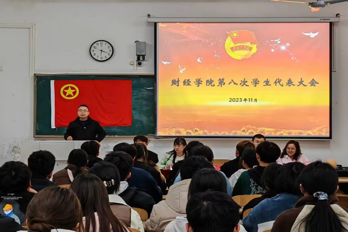 11月17日下午,财经学院第八次学生代表大会在龙湖校区致知楼A108教室顺利召开。财经学院党委副书记、纪委书记耿广汉,院团委书记薛枫,学生会秘书长尹成超、辅导员丁雨妍出席会议。来自学院各学生组织和班级的学生代表共70人参加会议。会议由尹成超主持。