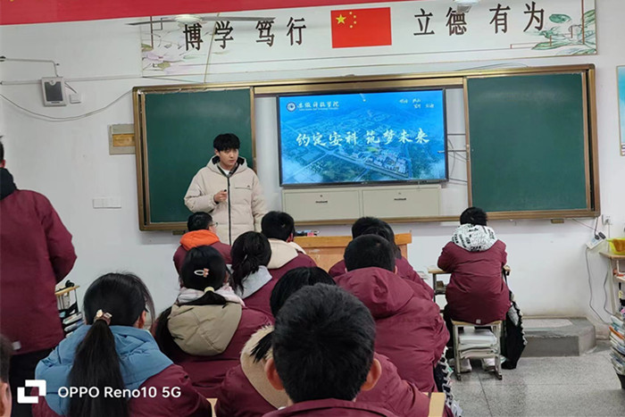 支部团员伍博文在母校肥东锦弘中学向学弟学妹们分享了自己高三的学习经验和丰富多彩的大学生活,鼓励他们努力学习,实现梦想。他详细介绍了QY球友会的历史沿革和专业设置,重点就财经类专业的课程设置、就业方向等学弟学妹们进行了交流,欢迎学弟学妹们报考QY球友会。