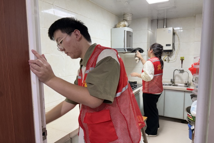 趁着间隙,队员们跟着社工走访了2户行动不便的老人。高龄的李爷爷腿上有旧疾,队员们一边帮着打扫厨房里的油污和清洗油烟机,一边听老人讲年轻时参与水库修建的故事。“那时候大家一起扛石头,哪想过现在能住上楼房,有自来水哟……”李爷爷的话让队员们更深刻地理解了乡村振兴四个字的分量——不仅是物质条件的改善,更是一代代人奋斗成果的延续。