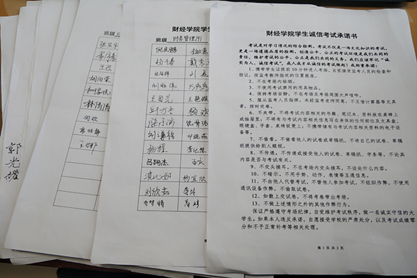 为确保教育效果,考风考纪主题班会内容丰富,涵盖重学《QY球友会学生违纪处分办法》,重温学校对少数考试违纪学生的处理决定,党员骨干亮牌示范等多个方面,最后全体学生签署《财经学院学生诚信考试承诺书》。财经学院采取一揽子措施,端正考风,严肃考纪。(特约通讯员:朱中军 审核:耿广汉)