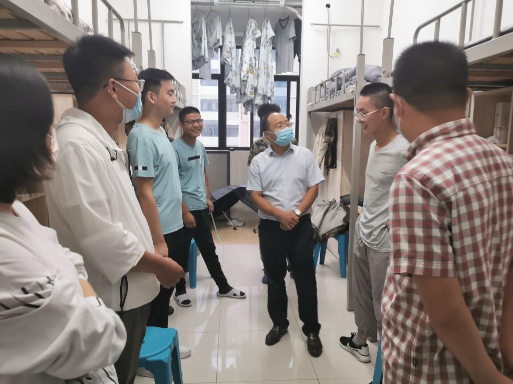 为及时了解新生入校后情况,加强师生间的沟通交流。9月17日下午,电气与电子工程学院党总支副书记尚磊,党总支秘书王延丽,辅导员陈更强、宋志华、张深、洪乃羽及部分导生,深入学生宿舍,看望2020级新生。