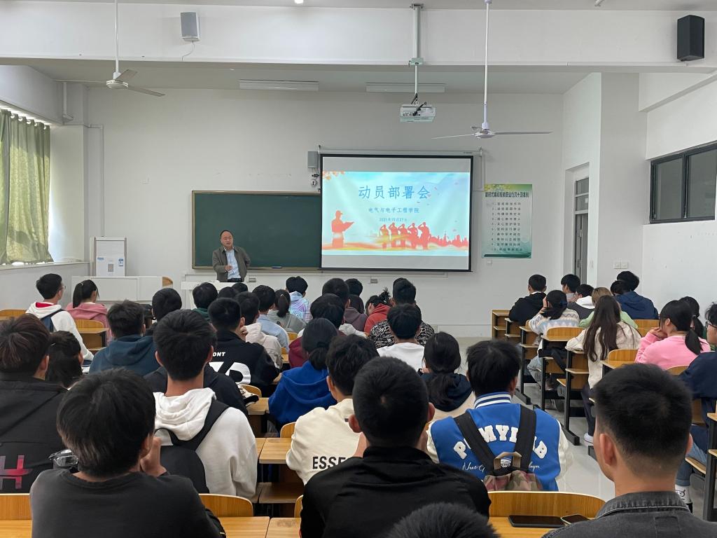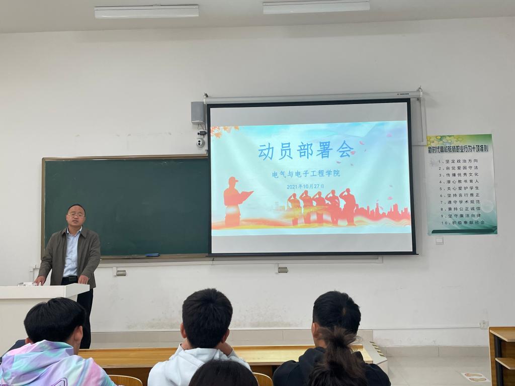 在我校第三十届田径运动会来临之际,为充分调动运动健儿的参赛积极性,同时确保电气与电子工程学院运动员训练期间安全,后勤保障服务组织有序。 10月27日,电气与电子工程学院于致知楼b107召开运动员动员部署会。电气与电子工程学院党委副书记、纪委书记尚磊,电气与电子工程学院分团委学生会指导教师于宏亮出席本次大会。电气与电子工程学院分团委学生会全体干部、电气与电子工程学院分团委体育中心全体干部和全体运动员参加了会议。