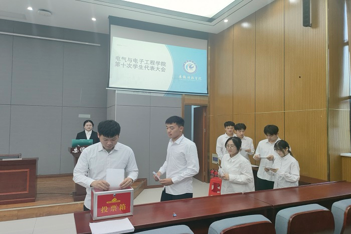 综合事务部负责人褚佳美宣读了《电气与电子工程学院学生会章程》。大会表决通过了《电气与电子工程学院第八届学生会委员会委员选举办法(草案)》和《电气与电子工程学院第八次学生代表大会总监票人、监票人建议名单(草案)》,选举产生了出席QY球友会第十七次学生代表大会正式代表、电气与电子工程学院第八届学生会委员会委员和第十届学生会主席团成员。