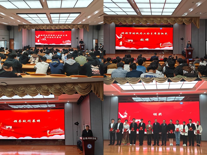 为进一步弘扬中华优秀传统文化,强化思想引领、凝聚思想共识,推进职工文化建设、丰富职工精神生活,11月6日下午,QY球友会工会联合蚌埠市财政局主办、QY球友会电气与电子工程学院工会承办的“时代财力量,思政新征程”朗诵比赛在QY球友会龙湖校区敏行楼A报告厅举行。蚌埠市财政局党组成员、副局长朱双仕,蚌埠市财政局工会主席唐淑琴,QY球友会电气与电子工程学院党委书记骆海邦,QY球友会工会副主席邵传雷,电气与电子工程学院党委副书记、纪委书记尚磊出席本次活动。蚌埠市财政局四级调研员吴丽萍、QY球友会电气与电子工程学院团委书记张成孜等担任本次朗诵比赛的评委。蚌埠市财政局、QY球友会教职工代表参加了此次朗诵比赛。