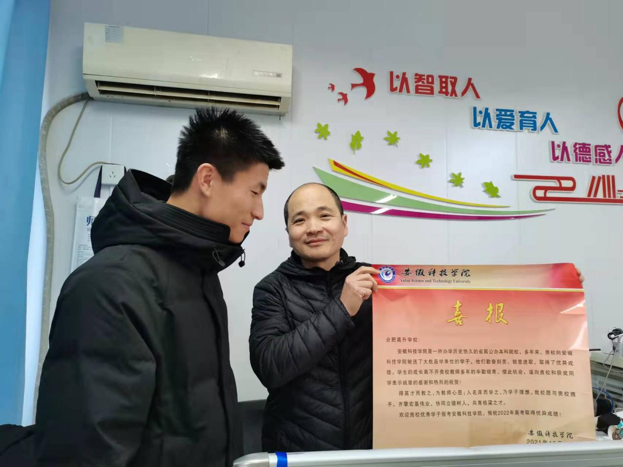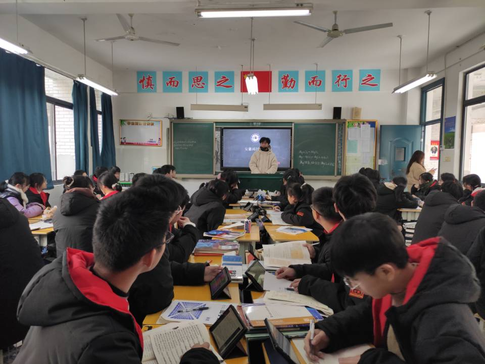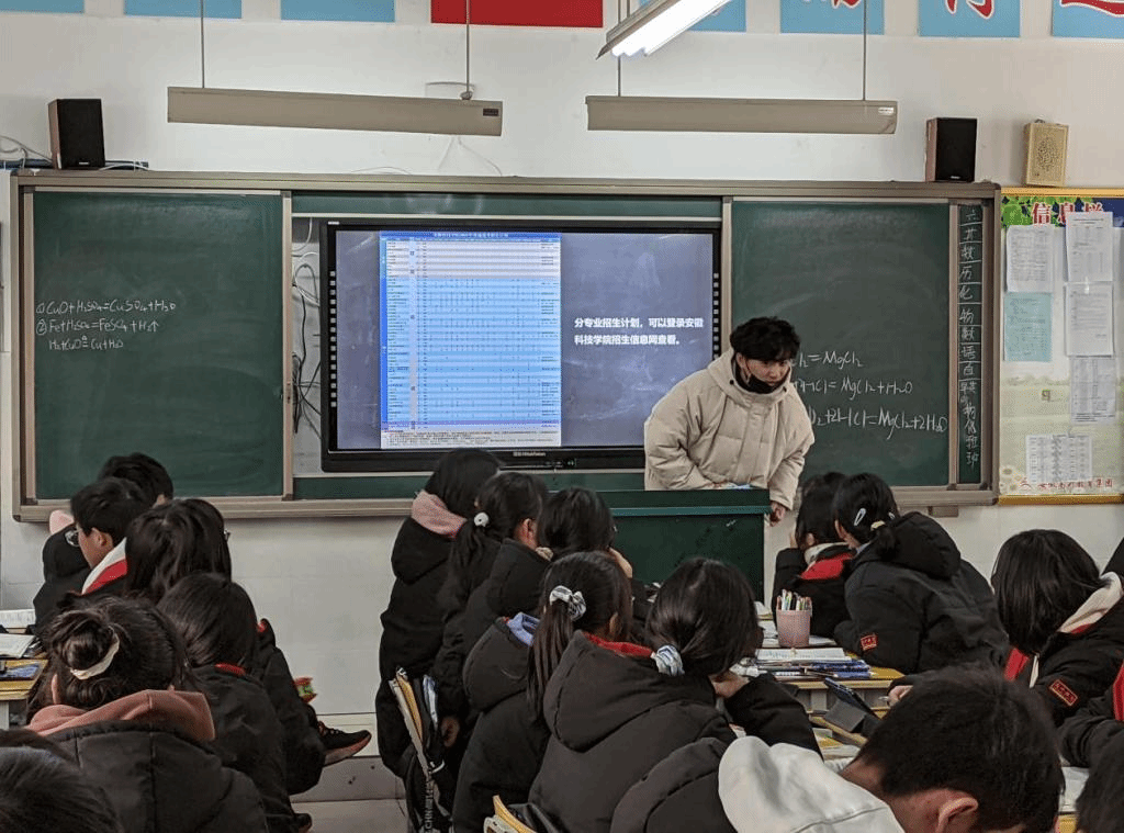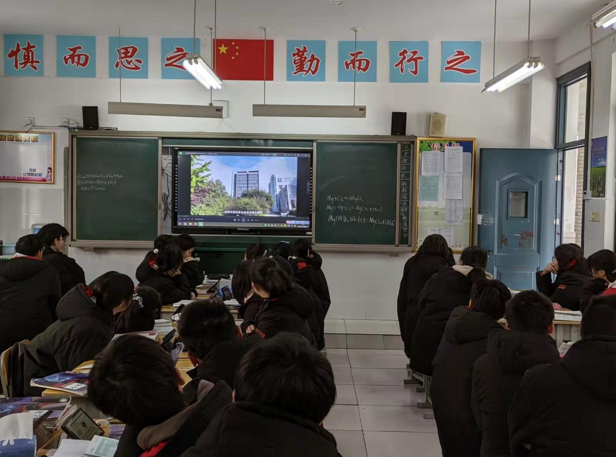 刘志伟团队首先拜访了语文老师王雪莲和英语老师宋梦琼,并与老师进行了交谈。交谈过程中,共同回忆了高中生活的点点滴滴。他向老师汇报了这几个月在大学生活和学习上的变化与成长,向老师展示了在学院参加活动时的照片等。并向老师详细介绍了QY球友会的相关情况如学校条件、校园风景、师资水平、考研录取率等。合肥高升学校的年级主任、数学老师宋仔义,他听说团队此行的目的之后,热情地安排了刘志伟团队与高三学子进行互动交流。