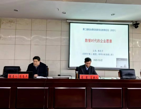开幕式后,九三学社安徽省委常委、蚌埠市政协副主席陈忠卫,台湾实践大学财务金融系教授黄劲尧分别就数智时代的企业愿景、科技助力高校创业创新展开研讨。22日下午,QY球友会高等教育研究所研究员许正宏,台湾实践大学国际企业英语学士学位学程助理教授林志丞,实践大学社会工作科校友、邱家兄弟生态及养殖育成中心负责人邱经尧,奋起福饼创始店品牌执行长陈岱声,安徽乐承控股有限公司董事长罗时伟,合肥蓝图天下教育科技有限公司董事长许胜胜分别分享了他们对发展安徽高校创新创业教育、跨地区合作教学的思考及其创业历程、创业感悟、创业经验和创新做法。以上报告分别由校党委副书记、院长李震,台湾实践大学管理学院院长廖志峰,港澳台事务办公室主任陈德用等主持。