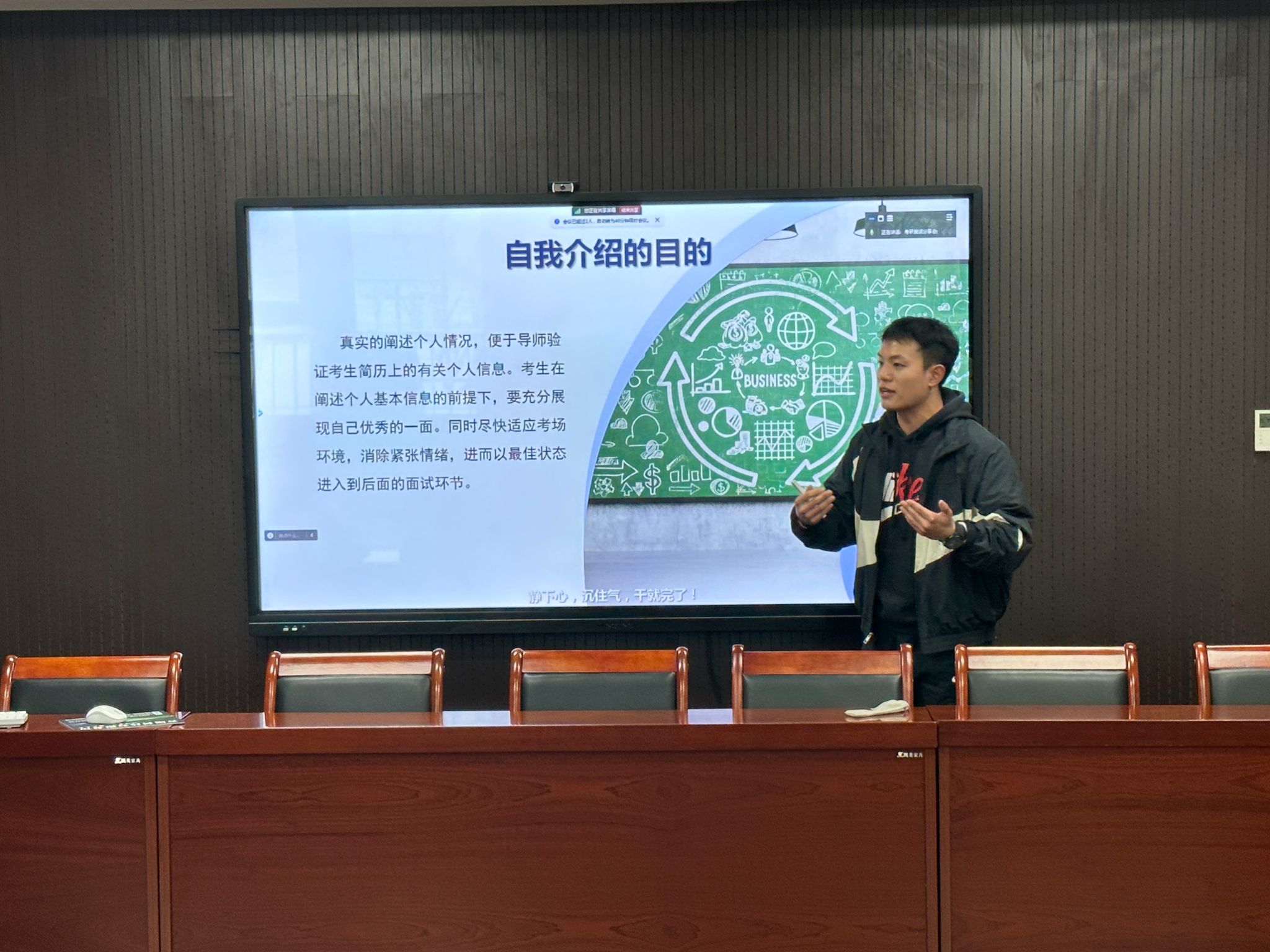 分享会上,参会老师逐一发表考研指导意见,从复试指导、调剂技巧,目标定位等多方面给予学生指导。赵晨妍结合历年真题案例,从“高频问题应答策略”“口语临场表现技巧”“专业英语积累方法”三个维度展开解析,强调逻辑清晰比发音完美更重要的实战原则。姚姝媛围绕政治素养、专业知识、调剂技巧三大板块结合自身经历和往届毕业生成功经验,深入浅出地讲解面试的技巧,为考研学子们提供了全面、实用的复试策略。