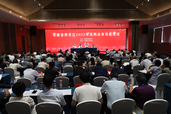 7月13日至14日,我校成功举办安徽省教育厅2023年度采购业务技能培训工作。此次培训工作由安徽省教育厅主办,我校承办。省教育厅二级巡视员朱乃韬,省教育厅监审处处长廖文秋,省教育厅监审处副处长、二级调研员曹玉建,省教育厅监审处四级调研员刘海燕,省教育厅监审处一级主任科员陆勇,省属高校采购部门负责人、厅属中专学校分管校领导及采购骨干人员共120余人参加会议。我校党委副书记、院长李震,党委委员、副院长王孝义出席会议。