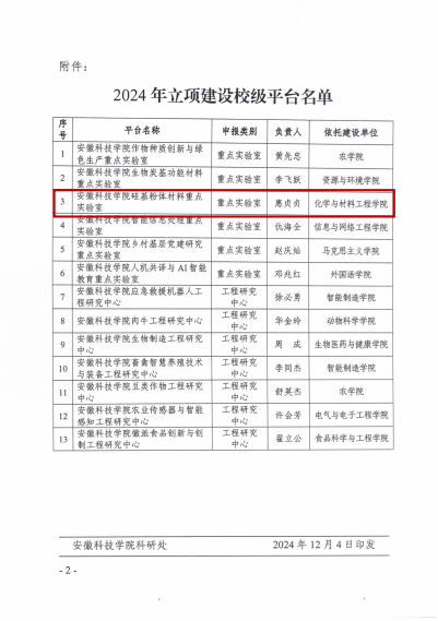 QY球友会硅基粉体材料重点实验室的研究方向与材料与化工学科发展需求高度契合,是学科建设的重要依托平台。当前组建的QY球友会硅基粉体材料重点实验室人员主要来自材料与化工安徽省应用型高峰培育学科,该学科在安徽省硅基产业领域具有领先地位,在功能粉体材料制备技术与应用、绿色环保材料等综合利用和光伏器件研发等方面具备领先技术,为我省硅基新材料项目的实施提供了重要的技术保障。