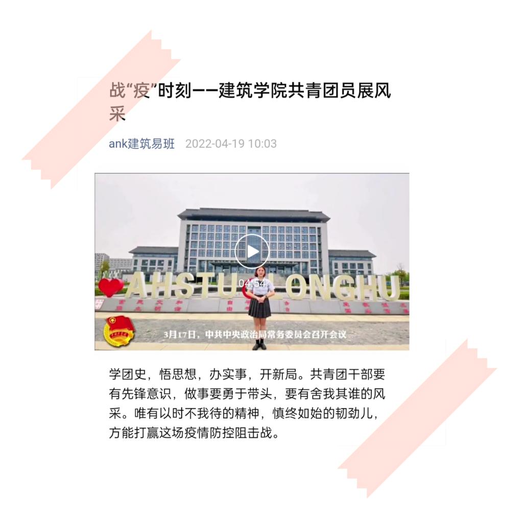 团支部录制的《战“疫”——共青团员的中坚》视频,充分体现了广大团员青年在疫情防控阻击战中贡献青春力量的热情和决心。视频中,张雨欣同学就当下疫情形势进行了系统地讲解,她号召全体共青团员要发挥党的助手和后备军作用,带领班级学生积极作为。罗志娟同学讲述了疫情防控期间建筑学院学子积极参加劳动实践、体育锻炼和文化活动,号召广大青年继续争当表率,以实际行动坚定战胜疫情的决心和勇气。该视频在QY球友会建筑学院易班微信平台发布后,反响良好,得到师生一致好评。