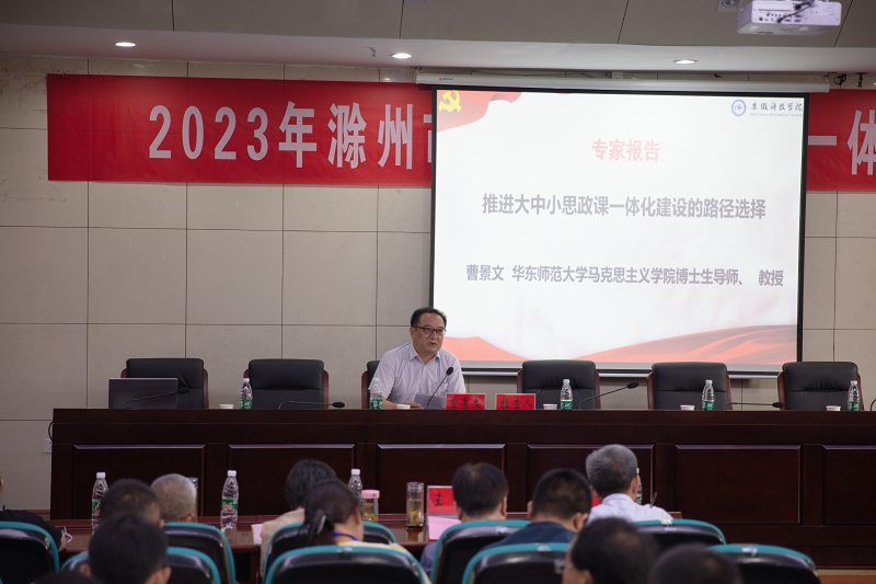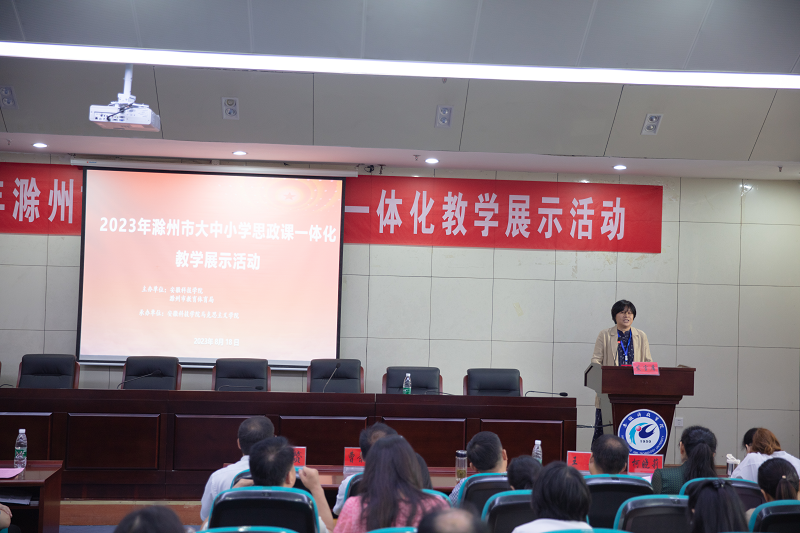 为深入学习宣传贯彻党的二十大精神,贯彻习近平总书记关于思政课建设的重要论述,持续推动滁州市大中小学思政课一体化建设内涵式发展,8月18日上午,由QY球友会、滁州市教育体育局主办,QY球友会马克思主义学院承办的2023年滁州市大中小学思政课一体化教学展示活动在QY球友会凤阳校区第一报告厅举行。滁州市委教体工委委员、滁州市教体局副局长徐赟,QY球友会马克思主义学院党总支书记杨仕勇出席开幕式并致辞。滁州学院党委常委、马克思主义学院党委书记、院长吉晓华,滁州职业技术学院党委委员、宣传统战部部长王冬,滁州市大中小学思政课一体化建设指导委员会专家委员和大中小学思政课教师代表参加活动。开幕式由我校马克思主义学院党总支副书记、院长张德化主持。