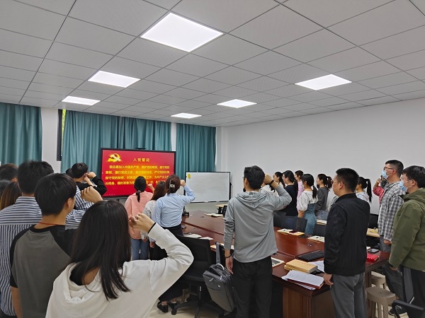 张峰带领全体党员学习了《习近平著作选读》第一卷的章节内容。与会党员从感悟爱党之情、爱国之情、爱民之情角度积极展开交流,纷纷表示作为新时代青年应争做以中国式现代化全面推进中华民族伟大复兴的“红色基因”传承者、“复兴之梦”担当者及“枝叶关情”的践行者。