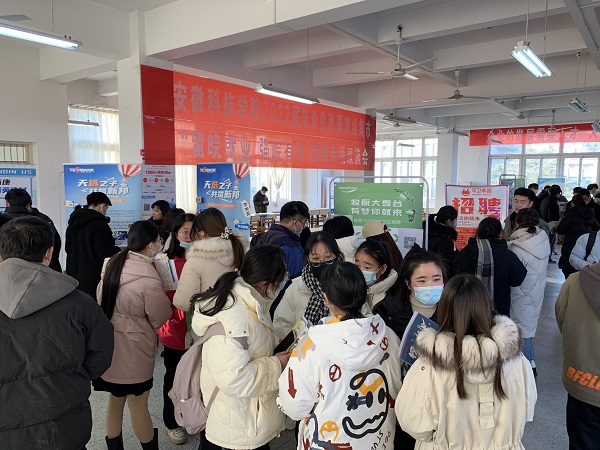 在老图书馆四楼招聘大厅,汉世伟食品集团有限公司、安徽禾丰牧业有限公司、滁州正大有限公司、双胞胎(集团)股份有限公司、合肥优然牧业有限责任公司、安徽皖恒农业科技发展有限公司等18家省内用人单位,提供就业岗位300多个。此次线下招聘会吸引100多名毕业生参会洽谈,部分毕业生现场投递了简历,并接受单位面试和就业实习邀请。