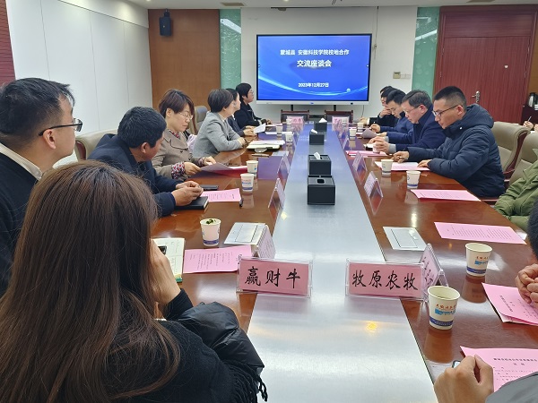 2023年12月27日,“‘蒙’您厚爱 智汇蒙城”2023年“招才引智高校行”活动在我校成功举办。当天下午我校与蒙城县政府及相关单位、企业开展了校地合作交流座谈。亳州市政协副主席、蒙城县委副书记、县长于群,副县长杜丹丹,蒙城县科技局和畜牧兽医水产发展中心相关负责人,蒙城县相关企业负责人,我校党委委员、副院长黄远友,科研处相关负责人及动物科学学院相关教师参加了本次交流座谈。会议由QY球友会动物科学学院副院长华金玲主持。