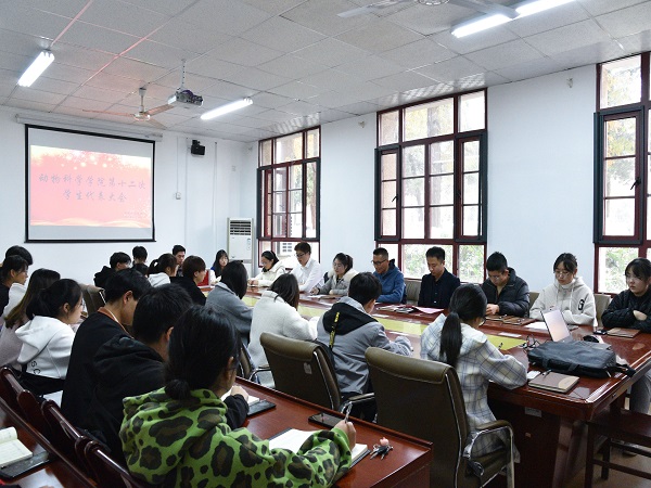 11月17号中午,动物科学学院在学院会议室召开第十二次学生代表大会。学院党委副书记、纪委书记汤帅,团委书记李焱,辅导员胡文丽及42名学生代表出席大会。会议由胡文丽主持。