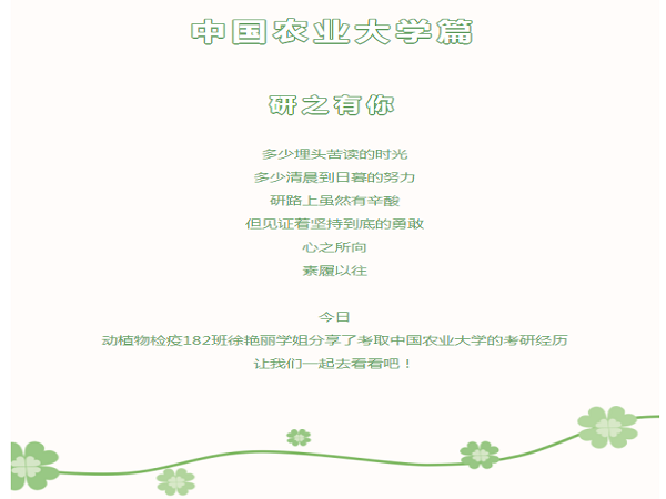 2022考研正缓缓落下帷幕,2023考研的主场已到来。为给学院2023考研学子提供更多择校、备考信息,动物科学学院于院易班开设考研经验分享专栏。