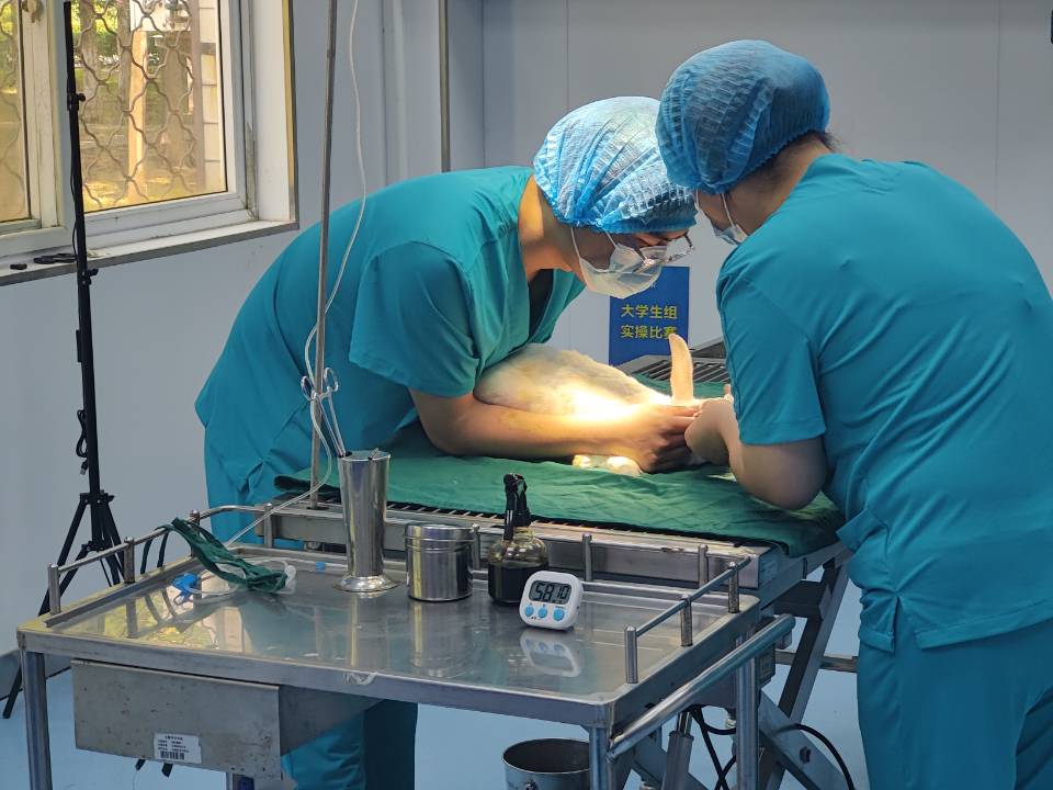 5月26日,第七届“雄鹰杯”小动物医师技能大赛在QY球友会附属兽医院手术室完成理论和实验操作考核,其中理论考核采用线上专业考核系统,随机抽取试卷进行作答;实验操作考核包括兔胃切开术、血涂片制作和徒手打结。