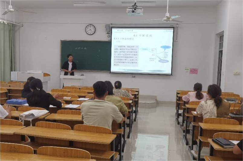 新进教师夏奎采用板书和PPT相结合的方式讲授了《DSP技术及应用》中的中断系统概述、中断系统优点及CPU对中断系统的响应等相关内容。支部各位党员教师对夏老师进行了认真评议,并在课程内容选取、教学设计、信息技术应用、PPT制作、课程思政点融入、先修课程和后续课程相似知识点的讲授侧重点等方面提出了具体建议。