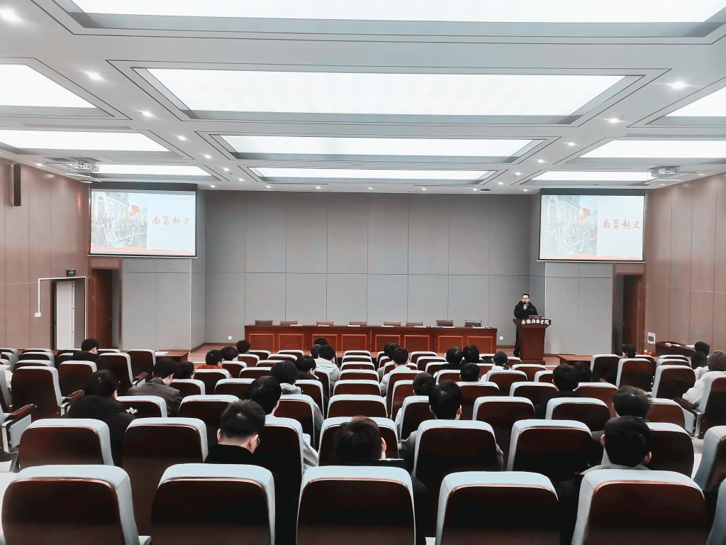 为形成“共建组织、共抓队伍、共享资源、共谋发展”的党建工作新格局,推动党建工作提质增效,12月16日上午,马克思主义学院纲要教研室教工党支部纪检委员黄钦海受邀在敏行楼B一楼报告厅作了题为“南昌起义”的主题党课。电气与电子工程电气电信专业学生党支部书记洪乃羽,学院全体学生党员及部分入党积极分子代表参加了此次活动,活动由光电建电专业学生党支部书记张深主持。