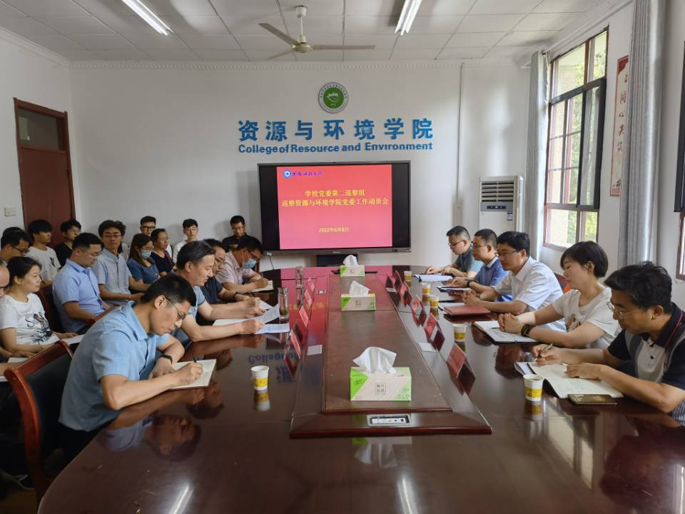 根据学校党委关于巡察工作的统一部署,2022年6月8日下午,学校党委第二巡察组巡察资源与环境学院党委工作动员会召开。巡察组组长钱锐同志做动员讲话,学院党委书记李孟良主持会议并作表态发言。