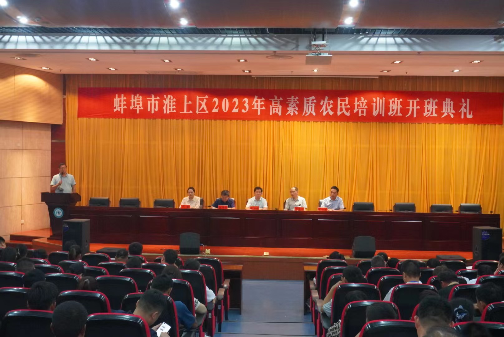 为全面助推蚌埠市乡村振兴,提升基层农业技术推广人员业务素质和技能水平,7月13日上午,2023年蚌埠市淮上区高素质农民培育在我校顺利开班。蚌埠市淮上区委常委、组织部部长赵海超,淮上区农综站站长吴言柱,管理学院党委书记丁景良,院长陈传万、副院长郑谦出席开班典礼,来自蚌埠市辖区150名农村发展带头人参加了开班典礼,典礼由丁景良主持。