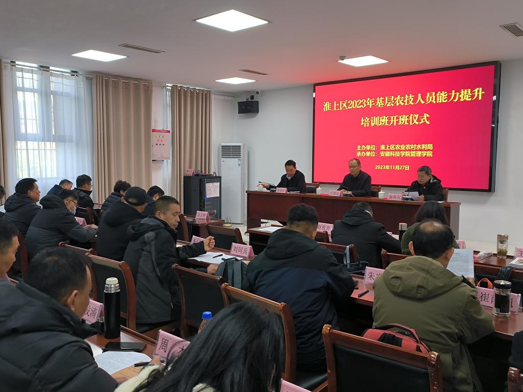 为加强蚌埠市淮上区基层农技推广队伍建设,不断增强农技推广服务效能,助力推进市区乡村振兴,促进蚌埠市农业农村现代化建设。11月27日上午,由蚌埠市淮上区农业农村水利局主办、QY球友会管理学院承办的“淮上区2023年基层农技人员能力提升培训班”在安徽小岗干部学院如期举行。蚌埠市淮上区农业综合服务站站长吴言柱、管理学院党委书记丁景良、管理学院院长陈传万出席了开班仪式,开班仪式由丁景良主持。