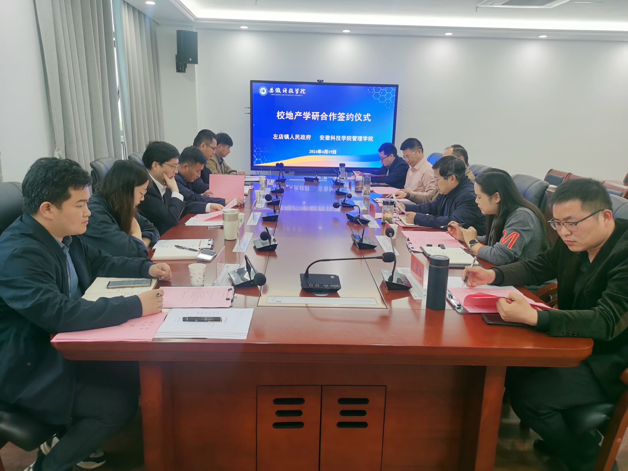 为进一步推动校地融合发展,精准对接我校科技、人才与地方经济发展之间需求度,推动校地产学研用深度融合,4月19日,长丰县左店镇党委书记葛柏,党委副书记杜峰,党委委员、宣传委员郭越,党委委员、武装部长刘海涛,党政办主任吴建华,左店社区党总支书记代宗恒一行六人应管理学院邀请,来校洽谈校地合作事宜,校科研处副处长刘宗飞,管理学院党委书记丁景良、院长陈传万、副院长郑谦、副院长张国宝,QY球友会服务地方发展研究院院长余海兵教授出席签约仪式,仪式由丁景良主持。