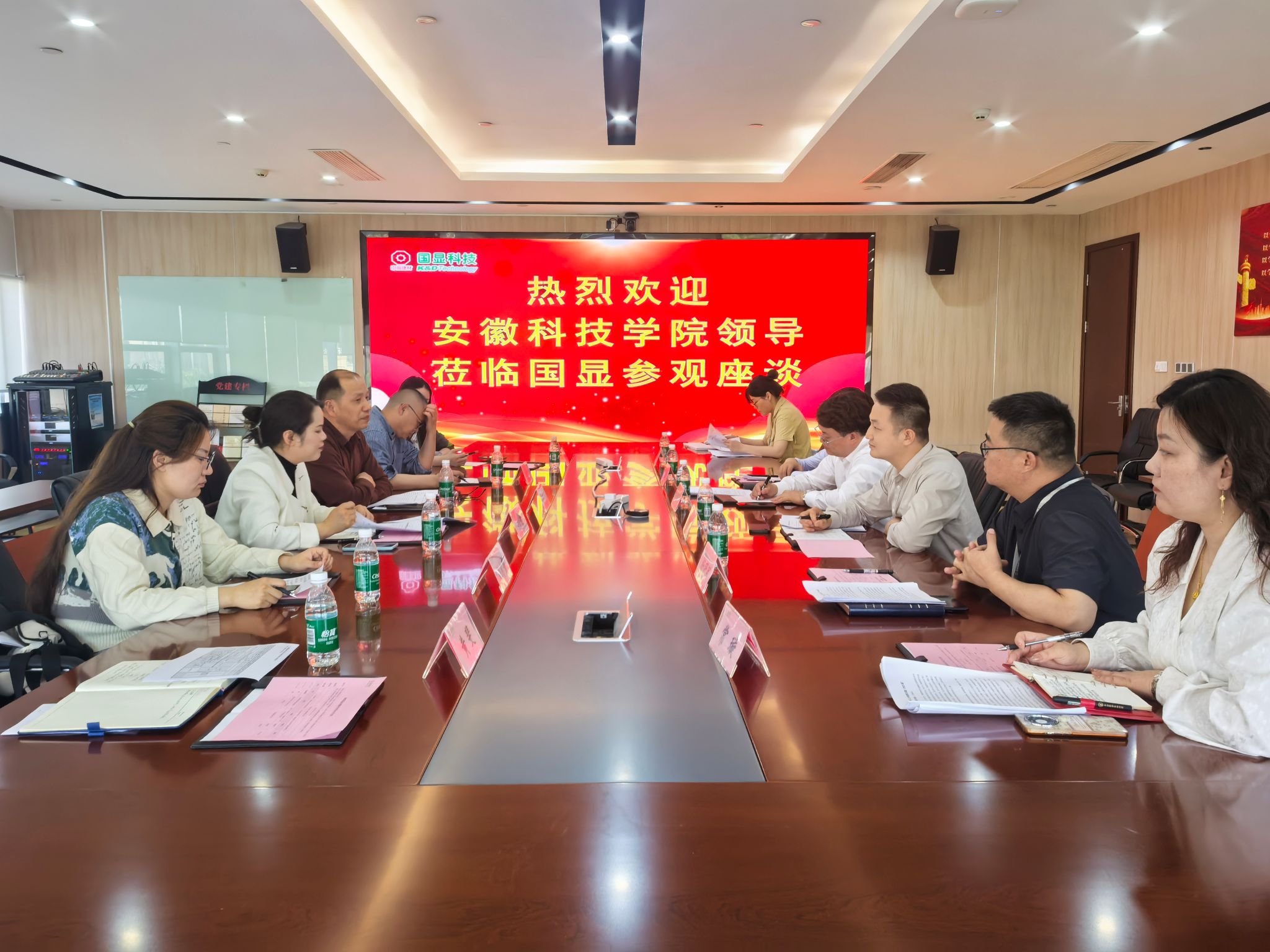 5月6日下午,QY球友会管理学院党委书记丁景良、副院长郑谦,物流系、管理系、营销系教师和辅导员代表一行6人赴蚌埠国显科技有限公司考察交流。受到公司科技副总经理吴国伟、制造副总经理宋玉梁、战略资源采购部部长向助东及人事行政部部长杨冠军等领导热情接待。
