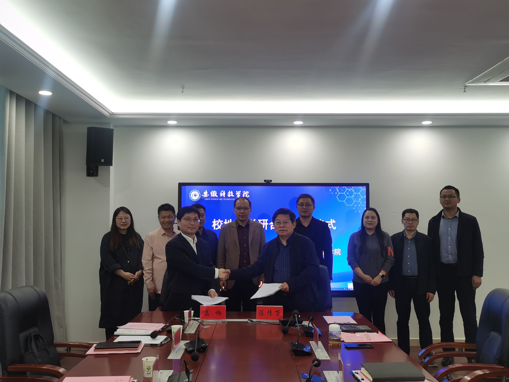 为进一步推动校地融合发展,精准对接我校科技、人才与地方经济发展之间需求度,推动校地产学研用深度融合,4月19日,长丰县左店镇党委书记葛柏,党委副书记杜峰,党委委员、宣传委员郭越,党委委员、武装部长刘海涛,党政办主任吴建华,左店社区党总支书记代宗恒一行六人应管理学院邀请,来校洽谈校地合作事宜,校科研处副处长刘宗飞,管理学院党委书记丁景良、院长陈传万、副院长郑谦、副院长张国宝,QY球友会服务地方发展研究院院长余海兵教授出席签约仪式,仪式由丁景良主持。