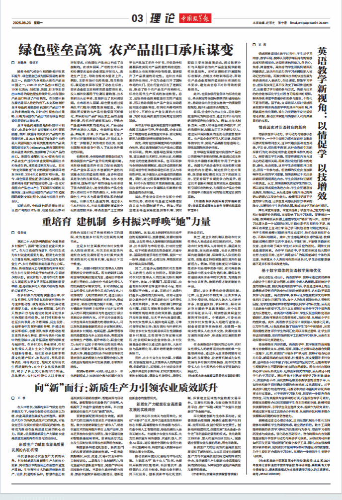 我校研究生在国家级报刊发表理论文章 探讨新质生产力引领农业高质量发展