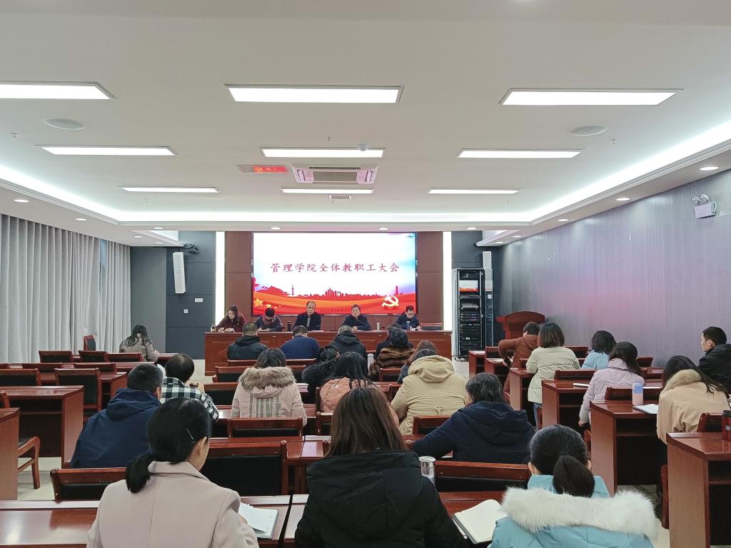 12月22日下午,管理学院在龙湖校区西辅楼111会议室召开期末全体教职工大会暨审核评估动员会,梳理总结年度工作,布置期末及寒假重点工作,对审核评估再动员。学院党政领导及全体教职工出席会议,会议由党委副书记、院长陈传万主持。