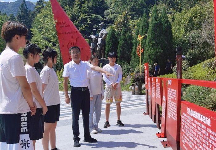 7月11日,管理学院团委副书记江旭聪、团委办公室黄斐老师利用指导学生暑期社会实践间隙,率领该院团委组织部、团委宣传部及院学生组织新型团支部负责人和青年团员代表,走进大别山革命老区六安市金寨县开展红色主题团日活动,深入学习领会习近平总书记在庆祝中国共青团成立100周年大会上的重要讲话精神和习近平总书记关于用好红色资源、赓续红色血脉的重要论述,实地感悟中国共产党人精神谱系中的大别山精神。