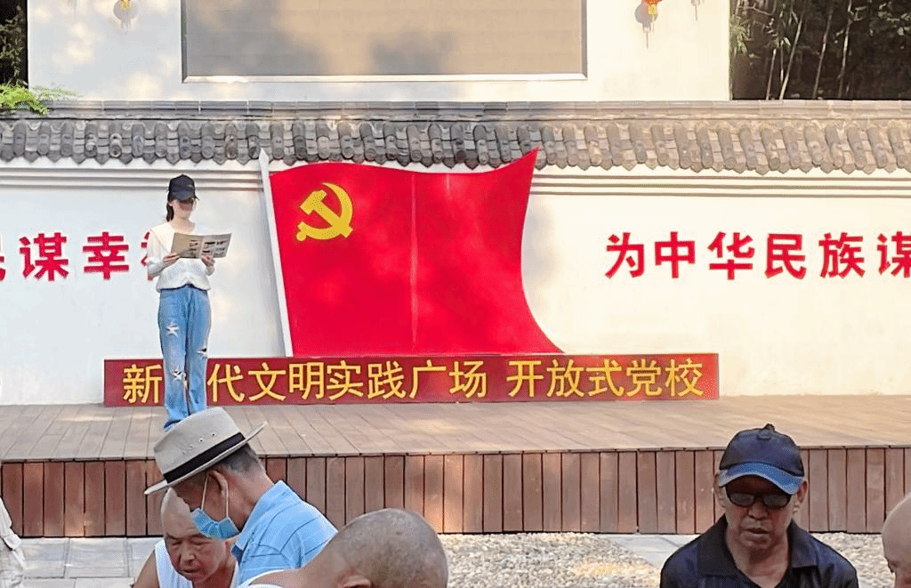 第三站,团队来到党史宣传教育广场。大家站在讲台上讲述党的百年奋斗历程和取得的辉煌成就,通过发放自制的宣传卡片和党史知识有奖问答的方式,将党史学习教育融入实践,以喜闻乐见的方式,把党的声音传到群众当中,用心用情讲好红色故事。