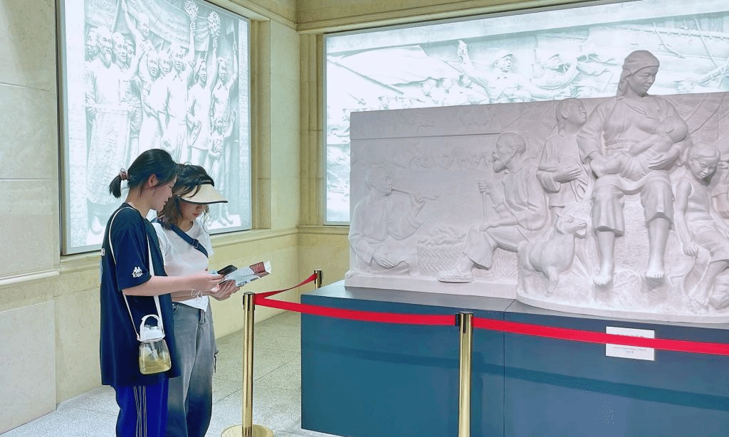第一站,团队来到刘开渠纪念馆。在馆长的讲述下,成员们了解到刘开渠先生的艺术风格融中西雕塑手法于一炉,手法写实,造型生动,最为震撼的莫过于人民英雄纪念碑浮雕。正是因为刘开渠先生主张“创造—种新境界”的雕塑艺术思想,才有了富有生命力的人民英雄纪念碑浮雕,激发了国人的民族精神,大家深深感受到了老一辈艺术家运用自己的方式来表达当时他们眼中的红色情怀。