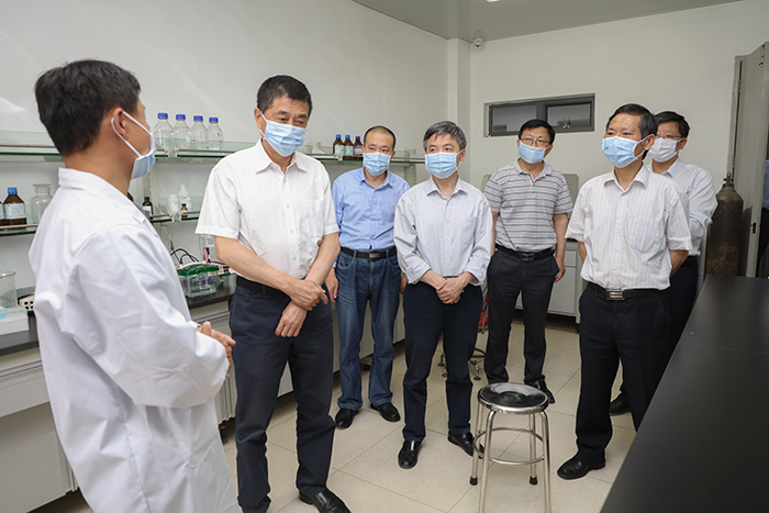 5月20日上午,省科技厅党组书记宛晓春在办公室主任刘旭、国家实验室与创新基地建设处处长周晓辉陪同下莅临我校调研省重点实验室建设工作。校党委书记蒋德勤,党委副书记、校长李震,党委委员、副校长李升和,党委(校长)办公室主任曾献功、科研处及其他相关部门负责同志参加了调研活动。