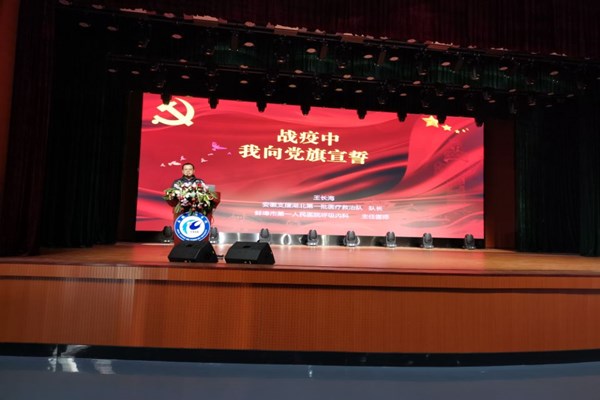 11月11日下午,我校在凤阳校区大学生活动中心举办抗疫英雄先进事迹报告会,学习抗疫英雄先进事迹,弘扬伟大抗疫精神。全国抗击新冠肺炎疫情先进个人、安徽省援鄂医疗队第一批队员、援鄂医疗队救治组组长、蚌埠市第一人民医院呼吸内科主任医师王长海应邀作了主题为“战‘疫’中,我向党旗宣誓”专题报告。第十三期学习讲坛暨“青马工程”大学生骨干培训班学员共1200多名师生参加报告会,学生处、团委、校医院负责人参加报告会。报告会由学生处处长何永勇主持。