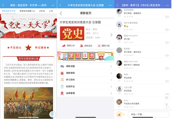 风雨百年,鉴往知来。为深入贯彻落实习近平总书记在党史学习教育动员大会上的重要讲话精神,落实《QY球友会“永远跟党走”学生党史学习教育方案》,切实增强学生党史学习教育的针对性、实效性,我校易班积极打造党史教育“云课堂”。