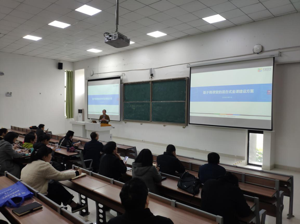 为推动“长江雨课堂”在教学场景中的广泛应用,提升教师信息化教学能力,全面推进信息技术和智能技术深度融入教育教学过程,2021年3月31日教务处邀请“长江雨课堂”高级培训师刘鹏和张利楠,在凤阳和龙湖两校区同步开展培训活动,全校100余位教师参加了此次培训。