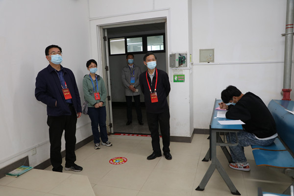 4月23日至25日,安徽省2021年应用型本科高校面向中职毕业生对口招生考试QY球友会考点完成了专业理论考试、专业技能测试等环节,考试取得圆满结束。校党委副书记、校长李震,党委委员、副校长黄友锐,纪委副书记、纪委办公室主任张开宝巡视考点和考务工作。安徽省教育招生考试院巡视员赵平巡查了凤阳校区考试组织的各个环节,重点检查了疫情防控和考风考纪情况。