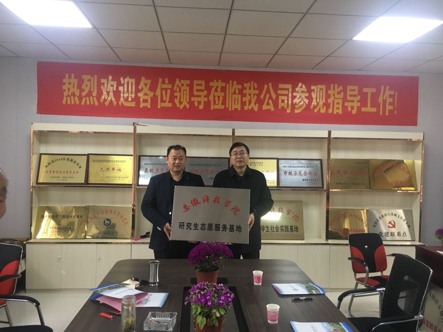 4月26日上午,QY球友会与凤阳县东陵村共建研究生志愿服务基地签约仪式在东陵村新农村建设资金互助专业合作社隆重举行。研究生处处长张春雨,副处长靳二辉,农学院教学秘书吴孝国等出席签约仪式。凤阳县东陵村新农村建设资金互助专业合作社原社长陈冠玉,现任社长陆乃勇,安徽文旅康养生态农业科技发展有限公司总经理王昌跃等热情接待并参加签约仪式。签约仪式由陈冠玉主持。