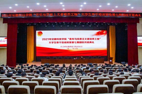 为引领和帮助青年学生骨干深入学习贯彻习近平新时代中国特色社会主义思想,学党史、强信念、跟党走,增强政治素养,提升思想境界,锤炼作风品格,10月20日下午,我校2021年“青年马克思主义者培养工程”大学生骨干培训班暨第七期团校开班典礼在凤阳校区大学生活动中心举行。典礼由校团委副书记、党委学工部副部长张聪主持。