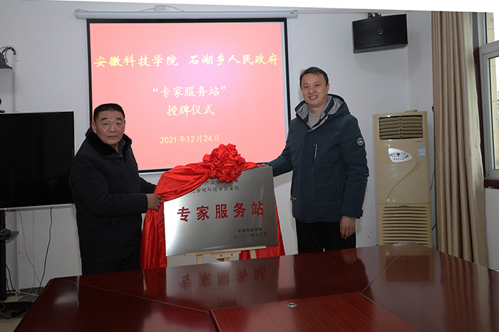 12月24日上午,“安徽省牛羊产业技术体系 九三学社QY球友会支社专家服务站”揭牌仪式在固镇县石湖乡人民政府三楼会议室举行。校党委宣传(统战)部副部长、团委书记黄立义,九三学社QY球友会支社主委程郁昕,安徽省牛羊产业技术体系首席专家、动物科学学院副院长华金玲,固镇县石湖乡党委书记王贡献,乡长曹怀龙,固镇县汉邦牧业有限公司董事长徐淼等出席揭牌活动。仪式由石湖乡人大主席殷献利主持。