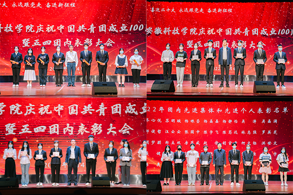 为庆祝中国共青团成立100周年,引领我校青年学子弘扬五四精神,以优异成绩迎接党的二十大胜利召开,5月4日下午,我校“喜迎党的二十大 永远跟党走 奋进新征程”庆祝中国共青团成立100周年暨五四团内表彰大会在凤阳、龙湖两校区同时进行。校党委书记蒋德勤出席大会并为受表彰青年先进典型代表颁奖。校党委委员、宣传(统战)部部长卫胜,校党委委员、组织部部长钱锐,党委学工部部长、学生处处长何永勇,党委研工部部长、研究生处处长张春雨,党委宣传(统战)部副部长、校团委书记黄立义,与各学院团委书记和团员青年代表共同参加了活动。