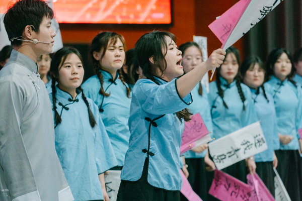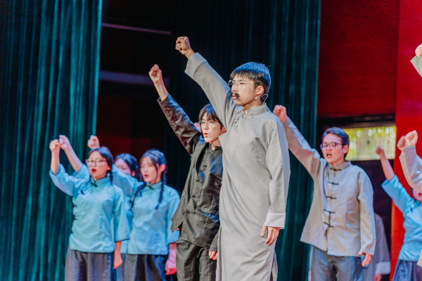 颁奖结束后,由我校师生共同创作表演的庆祝中国共青团成立100周年舞台剧《觉醒》举行首演。《觉醒》通过舞台艺术的形式再现了五四运动那段救亡图存、激情燃烧的岁月,展现了一个民族从沉睡到觉醒的时代故事。舞台剧共有八幕,依次呈现袁世凯签订二十一条卖国条约,陈独秀、李大钊、毛泽东等爱国青年探索寻找救亡图存道路,创办新青年、传播马克思主义、五四游行示威、中国共产党成立等重大历史事件,表现了中国青年的身影活跃在每一次影响国家民族进程的重大历史事件里,在各个领域为国家民族的解放斗争、发展进步和繁荣富强奉献力量;表达了一百年来在中国共产党的坚强领导下,中国青年已成为国家振兴、民族崛起的最重要力量之一,当代青年更是要“承风骨亦有锋芒,有梦则刚”,在新时代的青春赛道上奋力奔跑出当代青年的最好成绩。舞台剧从创作、排练到演出,学生全程深度参与,每一个角色、每一个动作、每一个细节均倾情打造,用心用情用力演出了精气神,在舞台上为广大师生呈现出了一堂生动的思政课。