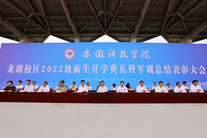 9月28日上午9时,我校龙湖校区2022级新生开学典礼暨军训总结表彰大会在庄严的升国旗仪式中拉开帷幕。校党委副书记、院长李震,党委委员、副院长黄远友,党委委员、纪委书记、监察专员王强,党委委员、副院长李升和;陆军装甲兵学院蚌埠校区指挥系作战指挥教研室中校、龙湖校区军训团团长邢旺等出席了本次大会。大会由王强主持。