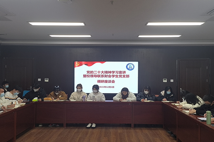 12月1日下午,党委委员、纪委书记、监察专员王强深入财经学院财会学生党支部宣讲党的二十大精神,并召开调研座谈会,与学生代表谈心谈话,倾听学生诉求、指导学生成长成才。财经学院党政班子成员、师生党员40余人参加会议。